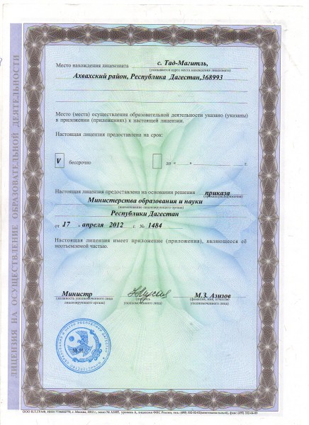 | Адрес местонахождения образовательной организации* | 368993, республика Дагестан , Ахвахский район , с.Тад-магитль УЛ. Тад-магитлинская №179 |